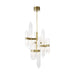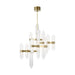 The Langston Medium Chandelier by AvroKO for Tech Lighting was carefully designed as a combination of elegant crystal forms from the past juxtaposed with an organic assembly inspired by in nature. The minimalist structural details put the focus onto the glass elements, which have a uniquely pointed shape and beautiful layered internal illumination. The solid brass armature is both simple and bold, rounding out an overall elegant confidence to the whole fixture. The individuality of this piece expresses its own distinct character offering decorative and warm comfort.