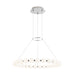 The Orbet 30 Chandelier by Sean Lavin is a modern upgrade to the classic ring design. Milk-glass orbs provide a soft diffused aesthetic for the integrated LEDs and are accented with metal spacers for a touch of contrast. This fixture is the perfect design for dining room, foyers, hospitality and more.