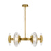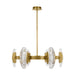 The Wythe Medium Chandelier by AvroKO for Tech Lighting presents a strong impression with smooth diffusing light in its most honest and simplest form. It is created from the marriage of industrial elements and the raw natural expression of glass. The cylindrical brass structure holds cast glass that is lit to highlight the natural fissures and imperfections from the casting process. This fixture proves its distinction over time, aging with elegance and becoming unified with the place it intends to call home.
