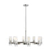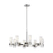 In the Geneva eight light single tier chandelier, slender fluted shades form an elegant, dynamic silhouette that's balanced by a strong frame of Burnished Brass or Polished Nickel.