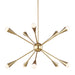 The Jax ten light single-tier chandelier in burnished brass enhances the beauty of your home with ample light and style to match today's trends. Jax channels the celestial allure of a starburst silhouette, celebrating its iconic status within classic art deco design. Three finish options - including Burnished Brass, Polished Nickel and a stunning two-tone Midnight Black/Burnished Brass combination - make a refreshingly modern statement.