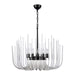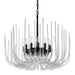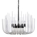 12-Light Solid Curved Clear Glass Satin Brushed Black Chandelier.