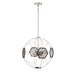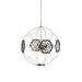 9-Light 20" Dyson Globe Sputnik Chandelier with Decorative Geometric White & Black Metal Shade and Brushed Nickel Metal Details.