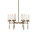 6-Light 26" Armed Chandelier with Individual Clear Wave Styled Cylindrical Glass Shade on a Antique Brass Decorative Metal Frame.