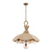 7-Light 28" Burlap Dome Pendant with Individual Clear Glass Globes and Antique Brass Metal Finish.