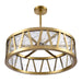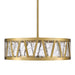 LED 30" crystal drum pendant with thick heavy gauge engraved triangular crystals and refined metal in our premium aged brass finish. Integrated Replaceable LED with 3CCT 3000K, 3500K and 4000K.