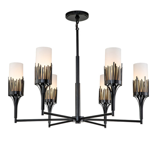 Sawgrass 6 Lt Chandelier Black is inspired by the sharply defined silhouette of natural sawgrass. Black metalwork contrasts strongly against white ...