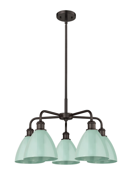 Plymouth - 5 Light - 26 inch - Oil Rubbed Bronze - Blue Shade - ChandelierDetails:Product Type: Metal ShadeFinish: Oil Rubbed BronzeShade: Blue Ply...