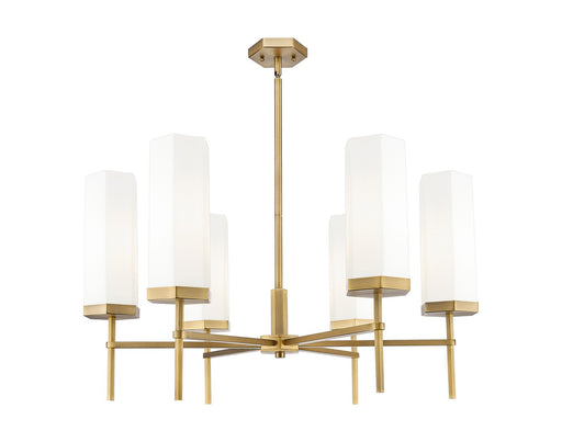 View full detailsInnovations 463-6CR-BB-G463-12WH Six Light Chandelier, Brushed Brass