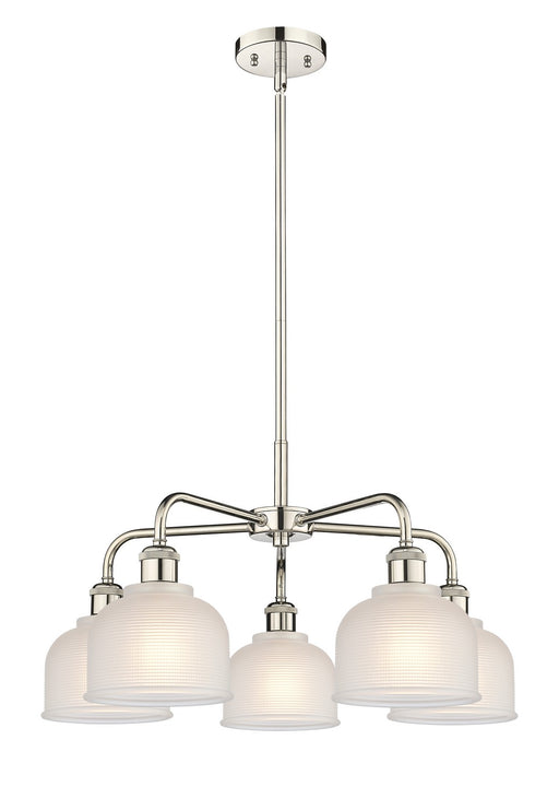 Dayton - 5 Light - 24 inch - Polished Nickel - White Shade - ChandelierDetails:Product Type: Glass DownFinish: Polished NickelShade: White DaytonRo...