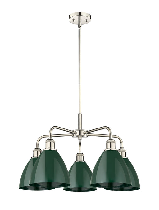 Plymouth - 5 Light - 26 inch - Polished Nickel - Green Shade - ChandelierDetails:Product Type: Metal ShadeFinish: Polished NickelShade: Green Plymo...