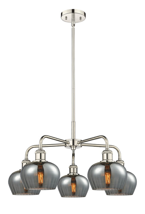 Fenton - 5 Light - 25 inch - Polished Nickel - Plated Smoke Shade - ChandelierDetails:Product Type: Glass DownFinish: Polished NickelShade: Plated ...