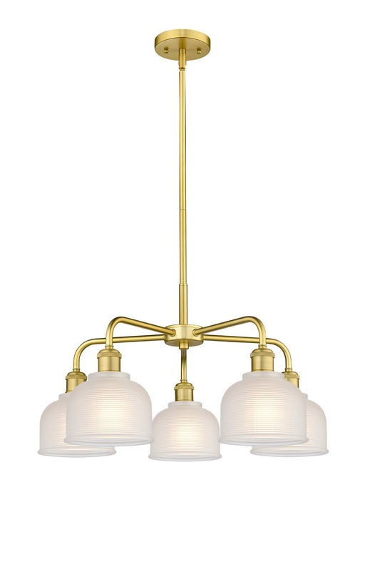 Dayton - 5 Light - 24 inch - Satin Gold - White Shade - ChandelierDetails:Product Type: Glass DownFinish: Satin GoldShade: White DaytonRooms: Kitch...