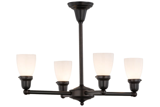 Recreating an era of style and charm from days gone by, Oyster Bay features four Goblet styled shades in Opal White blown-glass embraced by Solid B...