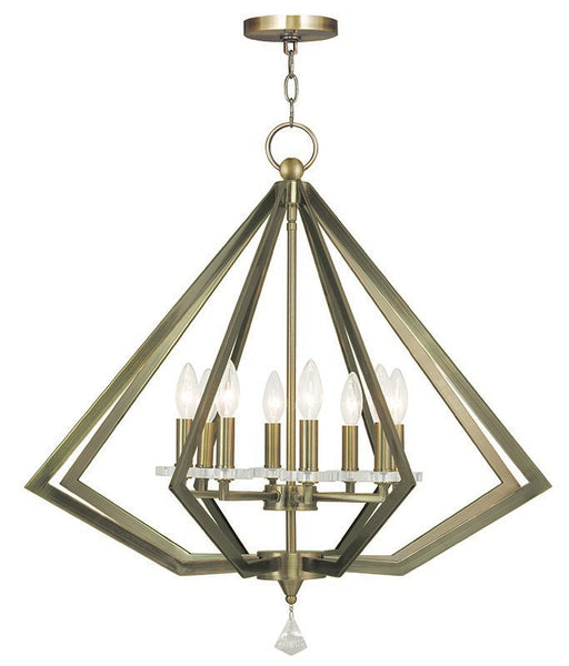 The Diamond six light antique brass chandelier lets you explore a new facet of your design sense. Shaped like a diamond, this contemporary six ligh...