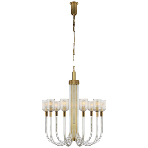 View full detailsVisual Comfort Signature KW 5401CRB/AB Ten Light Chandelier, Clear Ribbed Glass and Brass