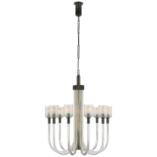 View full detailsVisual Comfort Signature KW 5401CRB/BZ Ten Light Chandelier, Clear Ribbed Glass and Bronze