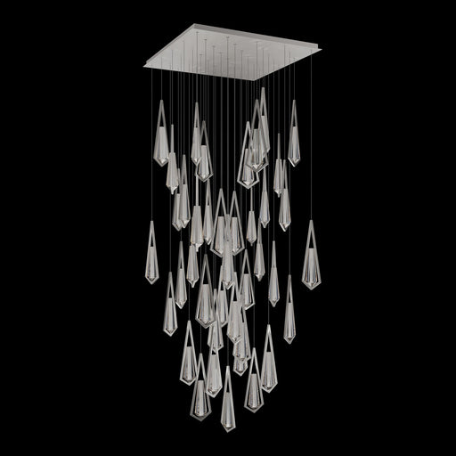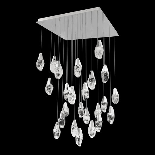 A shower of jewels. Suspended in mid-air, Schonbek Optic Crystal and Optic Haze Quartz elements composed of natural quartz gemstone illuminate at v...