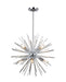 The Sunburst Collection 8 light chandelier is unique and a definitely beautiful focal point. Features aluminum color thin hollow rods attached to a chrome center. (also available with satin brass interior cluster).