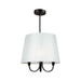 From the S&C design firm, with strict direction from Steven Sabados, the Rhythm Collection of pendants features a traditional type frame with flat tubular arms. The frame is finished in matte black and complimented with linen hardback white shades.