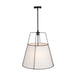Designed by Steven Sabados (S&C), the Pullman Collection of linen shades is elegantly suspended by black metal frames, seamlessly combining classic and modern design elements. The high-quality linen shades, gently tapered and expertly crafted, diffuse light to create a warm and inviting ambiance. With their timeless elegance and versatile aesthetics, these shades add a touch of sophistication to any space they grace. The model shown is a 4 lite 21" diameter pendant chandelier. (also available with brass metalwork)