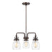 The Belton three light single tier chandelier in bronze provides abundant light to your home, while adding style and interest. Influenced by the vintage industrial designs of early 20th Century America, the transitional Belton lighting collection has seeded glass shades and Midnight Black finish, adding a layer of retro design to the warm look.