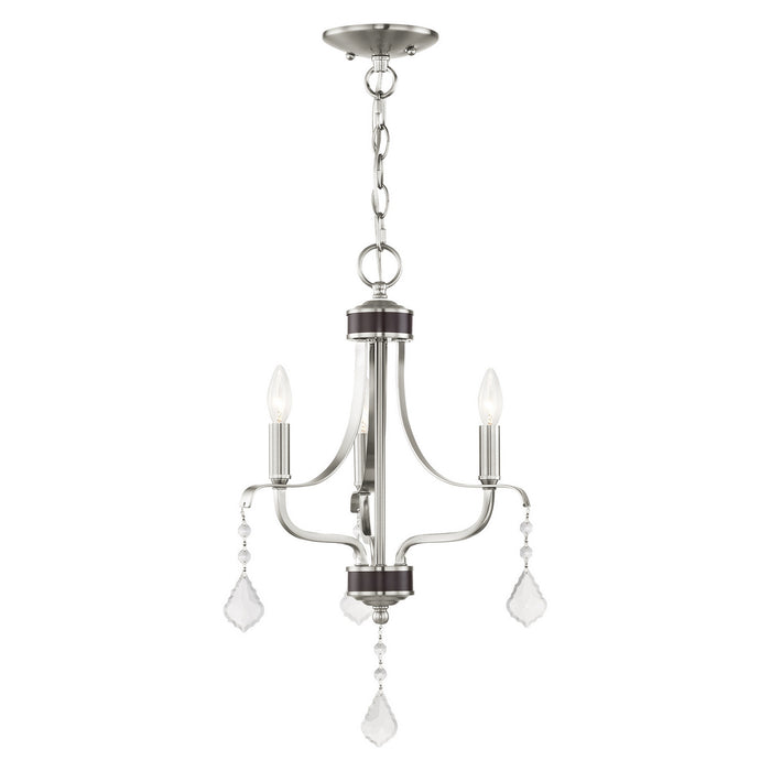 Livex Lighting 40783-91 Three Light Mini Chandelier, Brushed Nickel w/ English Bronzes
