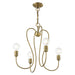 Updated traditional elegance and casual style defines the Lucerne collection. The curvilinear steel frame is offset by an antique brass finish. The essence of this collection amplifies today`s approach to a transitional style interior. This small four-light chandelier will add a rustic and casual flare to your living room, dining room or kitchen.