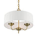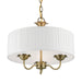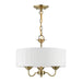 The three-light Edinburgh pendant chandelier combines floral details and casual elements to create an updated look. The hand-crafted off-white fabric hardback pleated drum shade is set off by an inner silky white fabric that combines with chandelier-like antique brass finish sweeping arms which creates a versatile effect. Perfect fit for the living room, dining room, kitchen or bedroom.