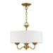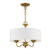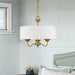 The three-light Edinburgh pendant chandelier combines floral details and casual elements to create an updated look. The hand-crafted off-white fabric hardback pleated drum shade is set off by an inner silky white fabric that combines with chandelier-like antique gold leaf finish sweeping arms which creates a versatile effect. Perfect fit for the living room, dining room, kitchen or bedroom.