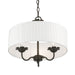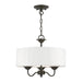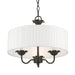 The three-light Edinburgh pendant chandelier combines floral details and casual elements to create an updated look. The hand-crafted off-white fabric hardback pleated drum shade is set off by an inner silky white fabric that combines with chandelier-like English bronze finish sweeping arms which creates a versatile effect. Perfect fit for the living room, dining room, kitchen or bedroom.