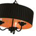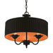 The three-light Harrington pendant chandelier combines floral details and casual elements to create an updated look. The hand-crafted black fabric hardback pleated drum shade is set off by an inner silky orange fabric that combines with chandelier-like black finish sweeping arms which creates a versatile effect. Perfect fit for the living room, dining room, kitchen or bedroom.