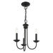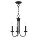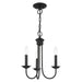 This elegant yet classical Estate collection is impeccably designed and crafted. This black finish three-light mini chandelier is perfectly suitable above a dining room, kitchen table, bedroom or grouped over a kitchen island with traditional or transitional interiors.