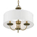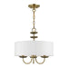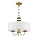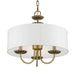 The three-light Brookdale pendant chandelier combines floral details and casual elements to create an updated look. The hand-crafted off-white fabric hardback drum shade is set off by an inner silky white fabric that combines with chandelier-like antique brass finish sweeping arms which creates a versatile effect. Perfect fit for the living room, dining room, kitchen or bedroom.