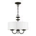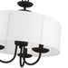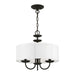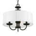 The three-light Brookdale pendant chandelier combines floral details and casual elements to create an updated look. The hand-crafted off-white fabric hardback drum shade is set off by an inner silky white fabric that combines with chandelier-like black finish sweeping arms which creates a versatile effect. Perfect fit for the living room, dining room, kitchen or bedroom.