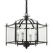 The Livingston collection features a classic six-sided lantern silhouette. The black finish with clear beveled glass gives the fixture charming style and the candelabra bulbs will fill your home with generous amounts of illumination that welcomes your guests. The versatile fixture can be transformed into semi-flush ceiling mounts.