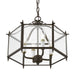 The Livingston collection features a classic 6-sided lantern silhouette. The English bronze finish with clear beveled glass gives the fixture charming style and the candelabra bulbs will fill your home with generous amounts of illumination that welcomes your guests. The versatile fixture can be transformed into semi-flush ceiling mounts.
