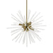 The Uptown six light pendant chandelier will become an attention-grabbing feature in your modern home decor. The antique brass finish graces the design with elegance and charm, providing a traditional quality to the appearance. The acid etched rods gives the pendant chandelier a sleek and attractive style.
