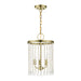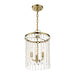 Decorative finishes complete the beautiful Elizabeth series with a refined quality. Clear crystal frills offer detailed elegance to the design of this three-light antique brass pendant chandelier. Attract attention with the bold personality provided by this lovely fixture which is perfect for your living room, dining room, kitchen, small foyer, bathroom or bedroom.