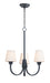 Graceful arcs of rectangular tubing transition to round cups that support tapered Satin White glass shades creating a crisp and clean transitional design. The frame is finished in your choice of Satin Nickel or Black which bridges modern and transitional design aesthetics.