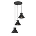 Get iconic mid-century modern style with this 3-light pendant, which has chic conical solid metal shades finished in Matte Black. The sleek black hanging cords allow you to adjust the hanging height of each light to meet the needs of your space. The height ranges from 6" to 126". The width is 19.5". Uses 3 standard size bulbs of up to 60 watts per bulb. Bulbs not included.