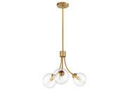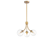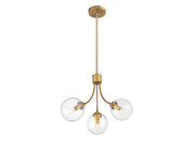 Get mid-century modern inspired style for your home with this 3-light chandelier. Its curved arms are topped with orb-shaped shades of clear glass. Finished in natural brass. 13.5" in height and 18" in width.