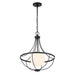 This unique and eye-catching 1-light pendant takes style cues from traditional chandelier silhouettes, then freshens them up with a contemporary twist. A curved frame finished in Matte Black supports an orb of white opal glass that shines from within. 22" height and 18" width. Comes with 120" of hanging chain. Uses 1 standard size bulb of up to 60 watts. Bulb not included.