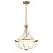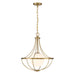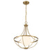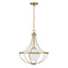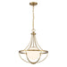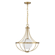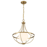 This unique and eye-catching 1-light pendant takes style cues from traditional chandelier silhouettes, then freshens them up with a contemporary twist. A curved frame finished in Natural Brass supports an orb of white opal glass that shines from within. 22" height and 18" width. Comes with 120" of hanging chain. Uses 1 standard size bulb of up to 60 watts. Bulb not included.