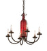 Capture the mood or life of any party with authentic wine bottle lighting. This chandelier does so much more than deliver light. It adds personality and pizazz to any interior. A hand forged Black vine and leaf coil is designed around the neck of this Red wine bottle, which illuminates and features an etched Grape design. Six faux candlelights are perched on bobeches to provide additional ambient light. The fixture is enhanced with a Timeless Bronze finish. Overall height ranges from 19 to 55 inches as stem length can be adjusted in the field. Handcrafted in our 180,000 square manufacturing facility in Yorkville, New York. Wine bottle colors, metal finishes and sizes can be customized. UL and cUL listed for dry and damp locations.