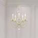 Light dances along bejeweled strands below playfully cantilevered arms for a whimsical flourish. A statuary column of Bohemian crystal stands aloft to present a new take on Neoclassical Revival.
