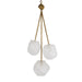 Three Sizes Of Frosted Geometric Shaped Glass Give Us The Focal Point For This Celestial Feeling 3 Lt. Pendant. The Glass Sizes Are Small At 6", Medium At 7" And Large At 8" Each Suspended From A Preset Rod Length Accented With A Rich Matte Antique Brass Finish. 3-60 Watt Max Candelabra Sockets. Bulbs Not Included. Supplied With 12' Wire, 5' Chain For Adjustable Installation.