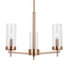 The Zire three light chandelier in Satin Brass finish embodies simple clean lines that strike a perfect balance of elegant yet minimalist design. Each of the lights sits on the round bottom rim, featuring an Edison-inspired design highlighted by a cylindrical glass shade. The assortment includes nine-light, five-light, and three-light chandeliers, a five light linear, one-light large and mini-pendants, and one-light, two-light, three-light and four-light wall/bath fixtures. A stylish and elegant addition to any room in the house. Zire is offered in a Brushed Oil Rubbed Bronze, Brushed Nickel, Chrome, Satin Brass or Midnight Black finishes.
