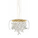 LED 20" Clear Glass Dome Shade with Clear Butterfly Crystal Stranded Chandelier with Aged Brass Metal Finish.