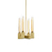 4-Light 12" Arm Styled Square Pendant with Clear Fluted Cylindrical Glass Shades Settled on a Sleek Aged Brass Arm Styled Frame.